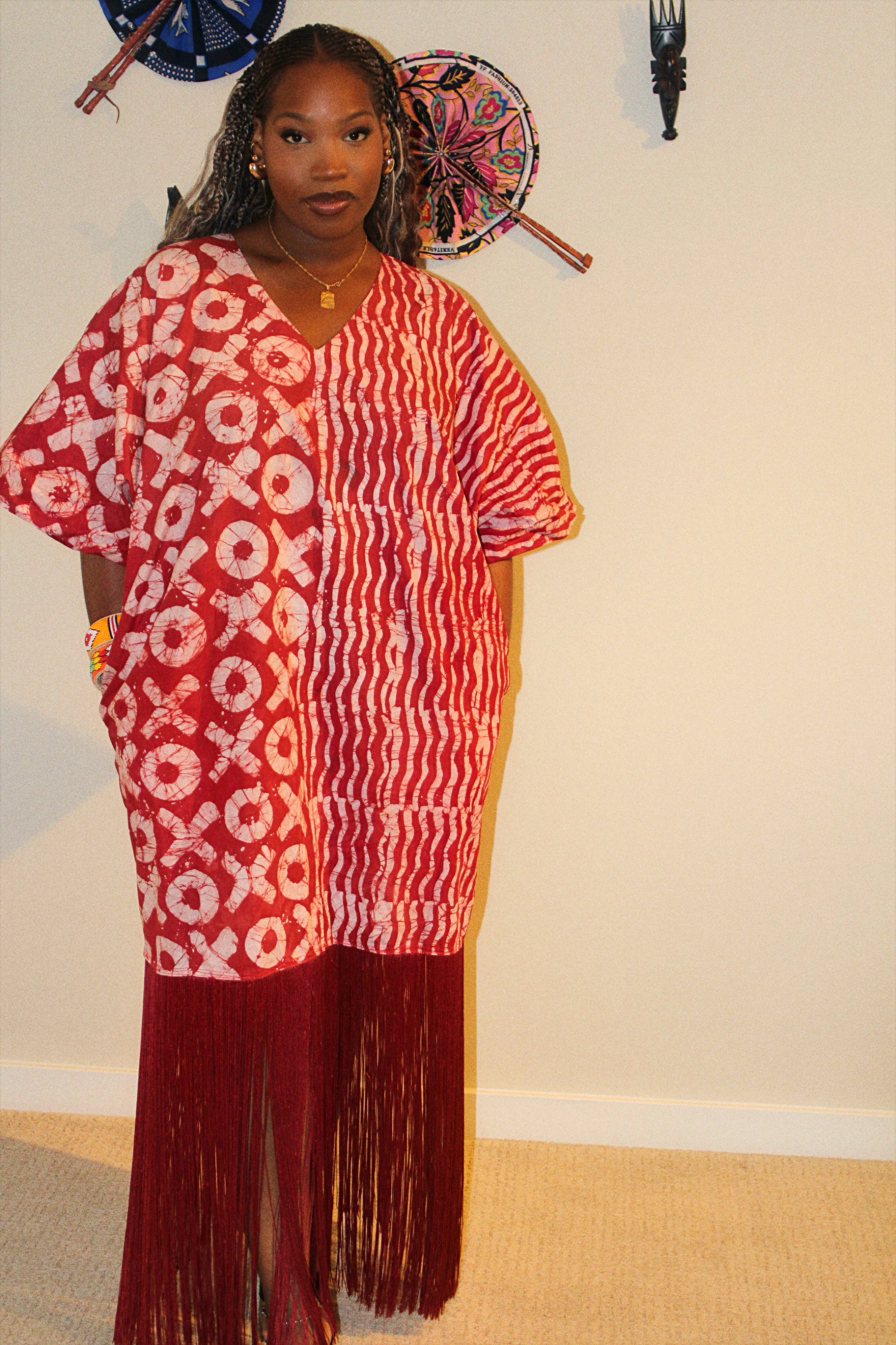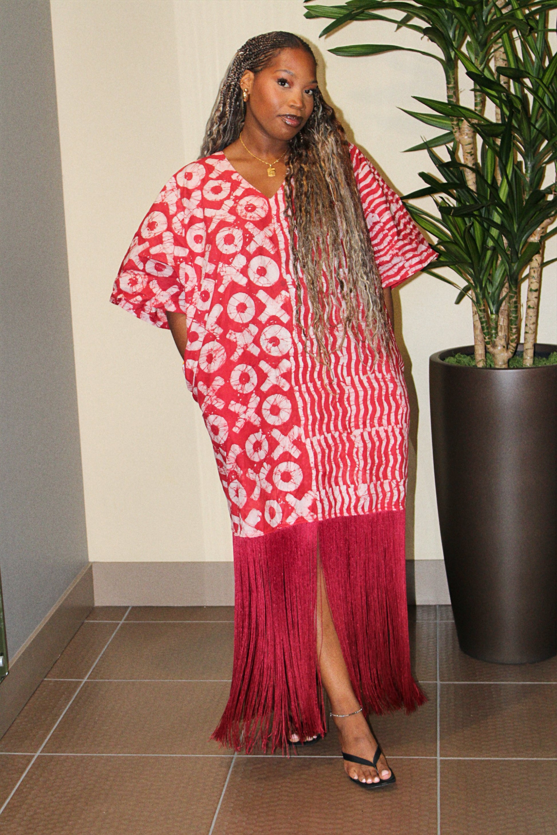 The deep, rich color enhances your natural glow, while the fringe detailing adds movement and flair to every step. Perfect for making a bold and elegant statement